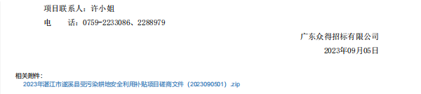 2023年湛江市遂溪县受污染耕地安全利用补贴项目【项目编号:ZDZJ23-Z07077】竞争性磋商公告